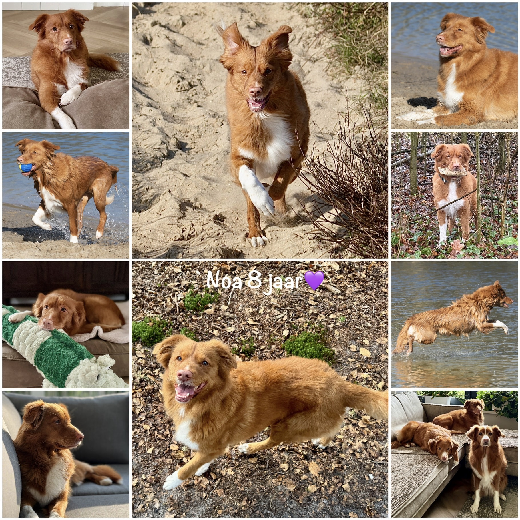 In de roedel lopen gaat heel goed. Wel wat trekken aan de lijn dus met enige regelmaat doen we een tuigje om. Ook lopen we solo met Meave. Dat doet ze netjes aan de slappe lijn maar nog wel ‘zitten, kijken, snuffelen, lopen’. Want al die nieuwe geluidjes en andere prikkels moeten geabsorbeerd worden😊